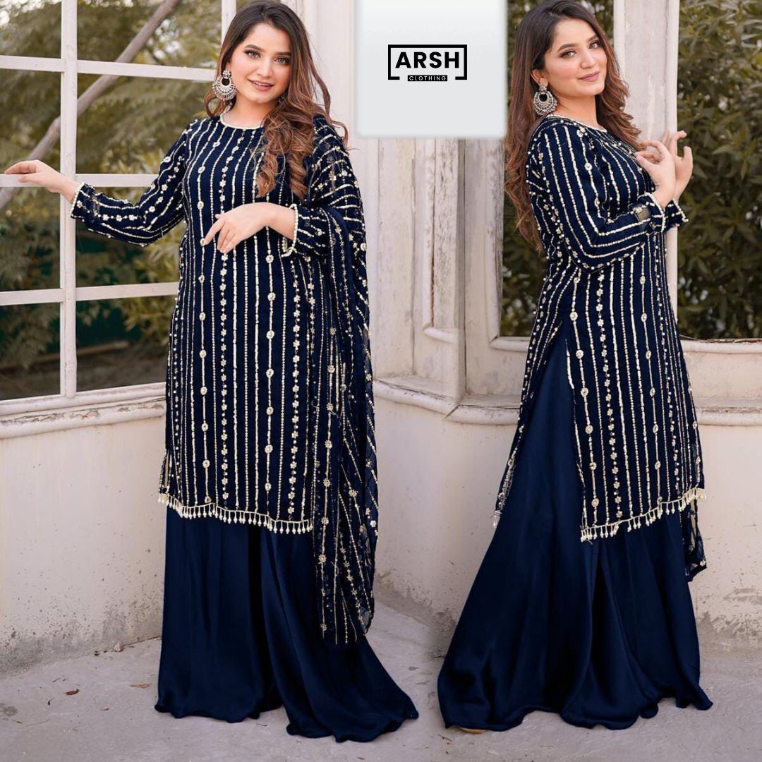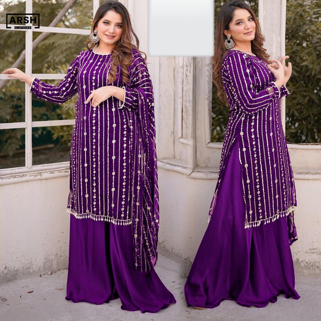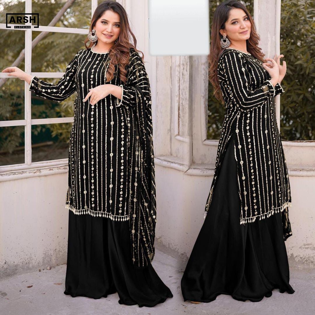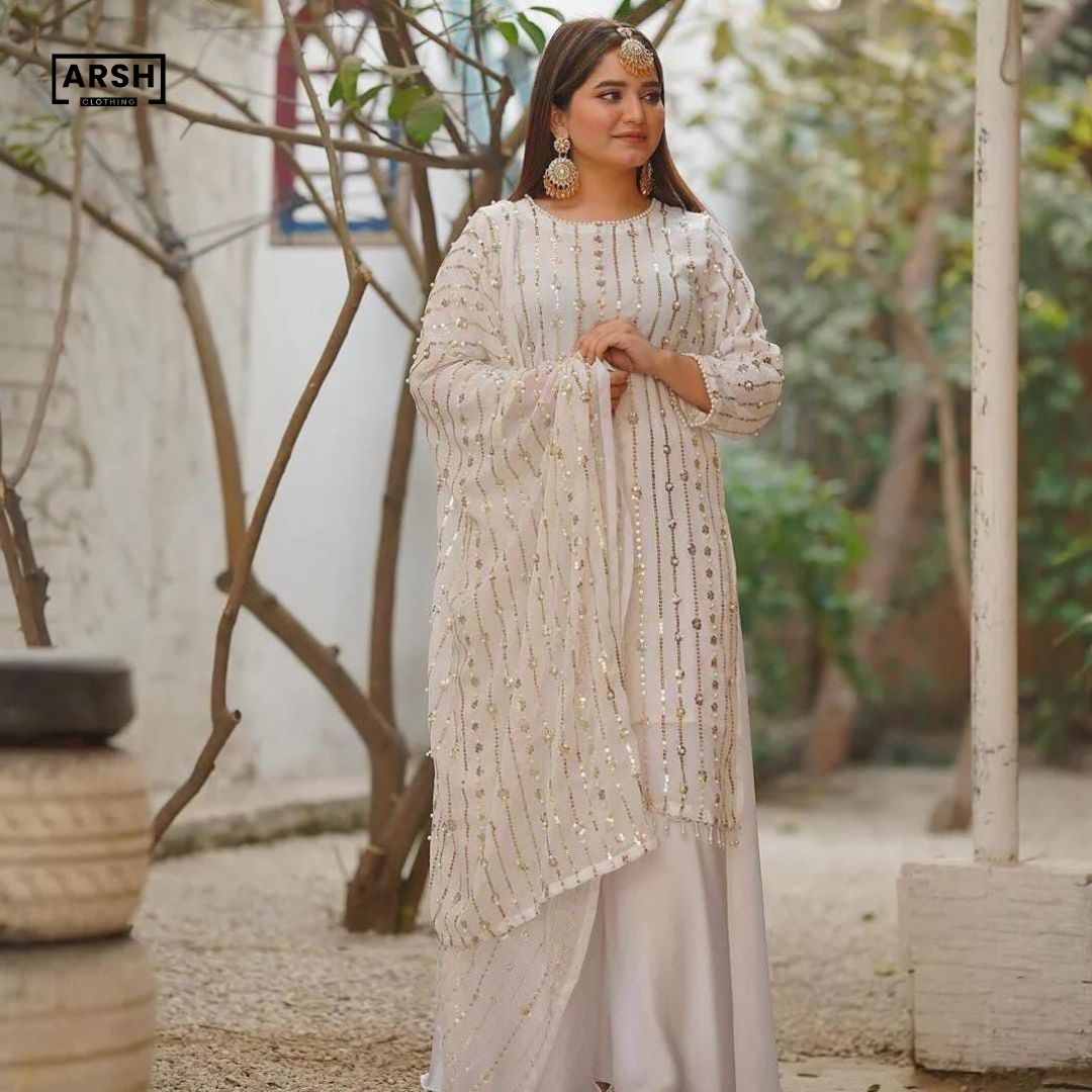 Frond And Back Both Side Heavy Sequence With Pearls Work On Shirt And Tassels,Lace Work On Sleeves,Shirt Border And Neck With Emb Dupatta 3Pcs