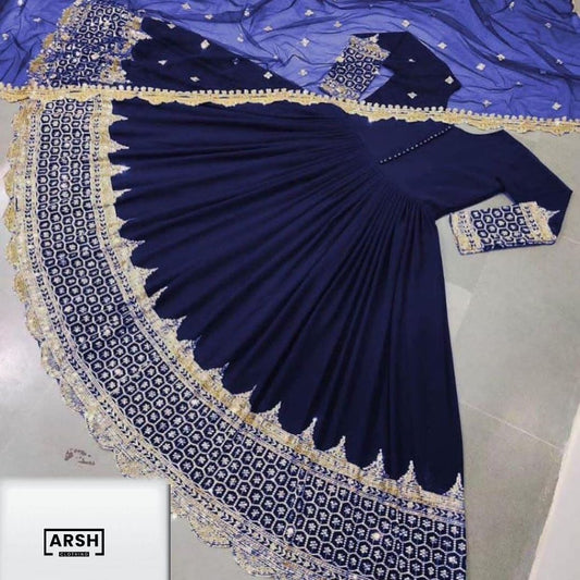 Two Layer Border Front & Back Lace work Long Flare Maxi With Plain Duptta 3Piece