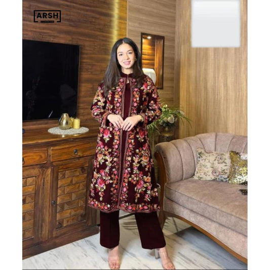 3 Piece Front Full Heavy Embroidered Gown With Sleeveless Inner And Trouser